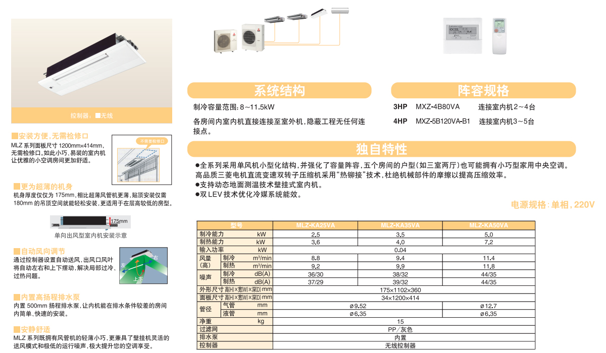 小巧、易安裝的室內機,讓優雅的小空調房間更加舒適 ?175mm更為超薄的機身 輕松安裝,更適用于層高較低的房型。 ?自動風向調節 解決局部過冷、過熱問題,更舒適。 ?內置排水泵,排水揚高500mm 適合各種安裝場合。 ?極低的運行噪聲 大大提高了空調享受
